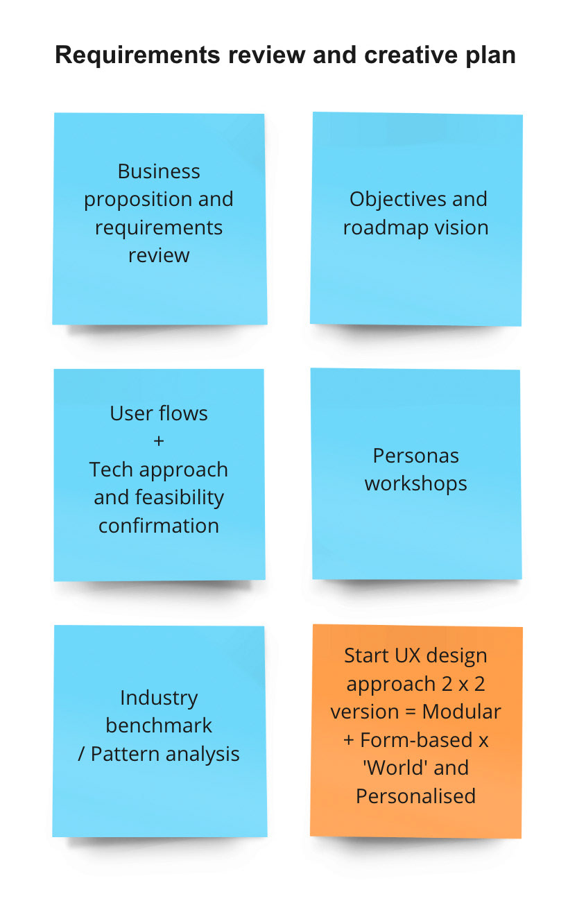 ▸ Prepared and presented together with the Dev Lead a future-proofed approach to increase feasibility, maintenance and integration of different technologies – how to build multiple versions, implement a new CMS tool, and integrate and signpost to an existing My Account.